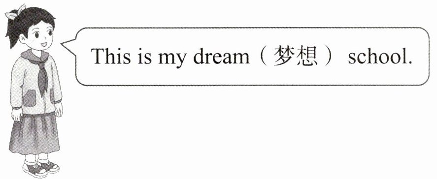 请在方框里描绘出你心中梦想的学校,并仿照示例,附上一段简短的英文介绍。
