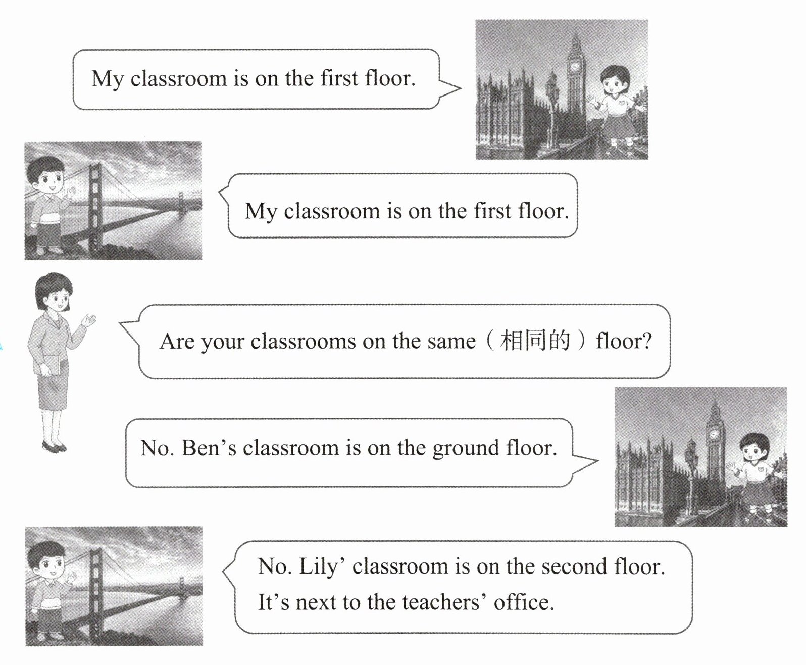 Lily来自英国,Ben来自美国,他俩在描述教室楼层时产生了误解,原因是两国对楼层称呼的习惯不同。