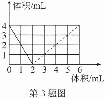 3. B (2024·德城区一模)如图是一定体积的氢气和不同体积的氧气化合成水(液态)的实验数据的关系图(横坐标表示通入氧气的体积,纵坐标表示反应后剩余的气体的体积,气体体积均在同温同压下测定),下列说法错误的是 (
