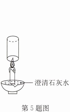 5. B (2024秋·运城期中)小刚将蜡烛粘在盘子的底部,向盘子中加入适量澄清石灰水,点燃蜡烛后,将干而冷的玻璃杯从上至下倒扣在澄清石灰水中(如图),下列说法正确的是 (
