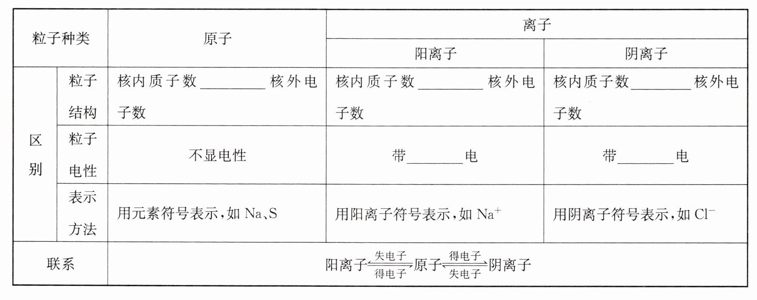 构成的。特别提醒:由离子构成的物质,阴、阳离子保持其化学性质,如保持氯化钠化学性质的是$Na^{+}和Cl^{-}$。