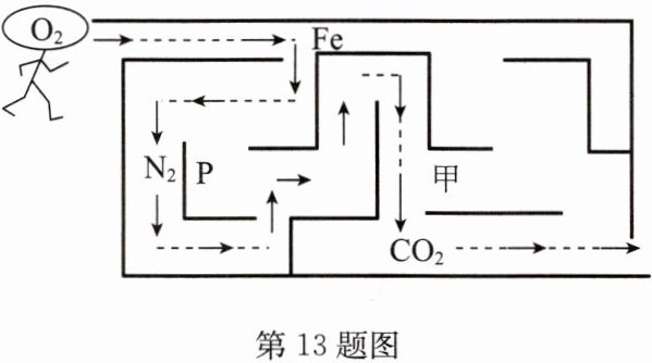 (2)如图所示“氧气”要穿过迷宫,从进口顺利地走到出口,途中遇到在点燃条件下不反应的物质才能通过。