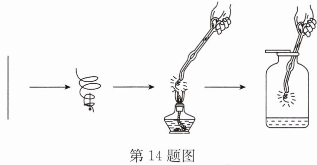 14.B 如图是铁丝在氧气中燃烧的全过程,请回答下列问题。