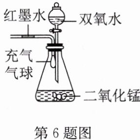 6. B (2023 秋·邯郸鸡泽县期末)如图是过氧化氢在催化剂二氧化锰的作用下,迅速分解放出大量氧气的实验装置,下列现象正确的是 (