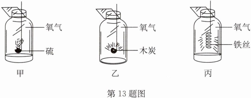 13. 氧气是一种化学性质比较活泼的气体,它可以和许多物质发生化学反应,如图所示。