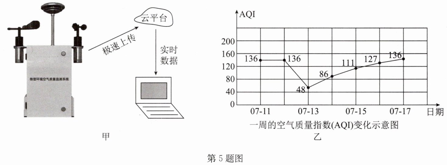 5. B空气是人类赖以生存的物质基础。某校社会实践小组的同学在老师指导下,组装了一个微型空气质量“检测站”,对当地空气质量状况展开了项目性学习。