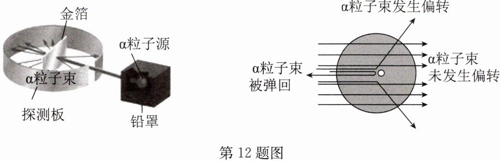 12. B 为了揭开原子内部结构的奥秘,1911 年,英国科学家卢瑟福进行了著名的α粒子轰击金箔实验。根据实验,不能获得的结论是 (