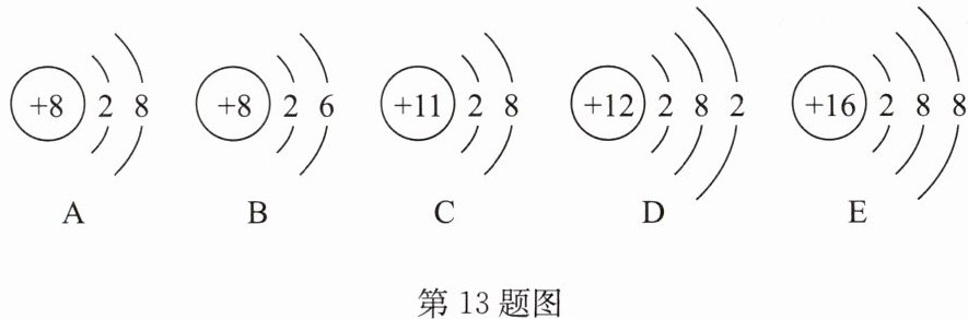 (1)上述图中 A~D 中的结构示意图属于同种元素的是