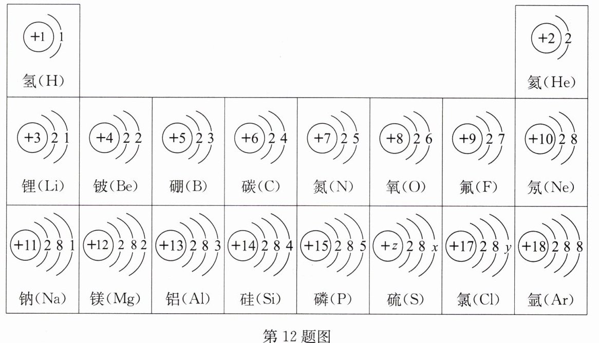 12. C 试依据核电荷数为 1~18 的元素的原子结构示意图,回答下列问题。