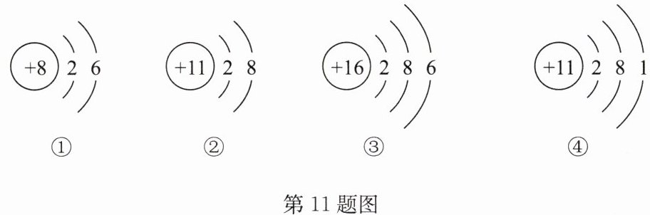 11. B (2024·宿城区校级模拟)下面是几种粒子的结构示意图。根据相关信息得出的结论,你认为正确的是(