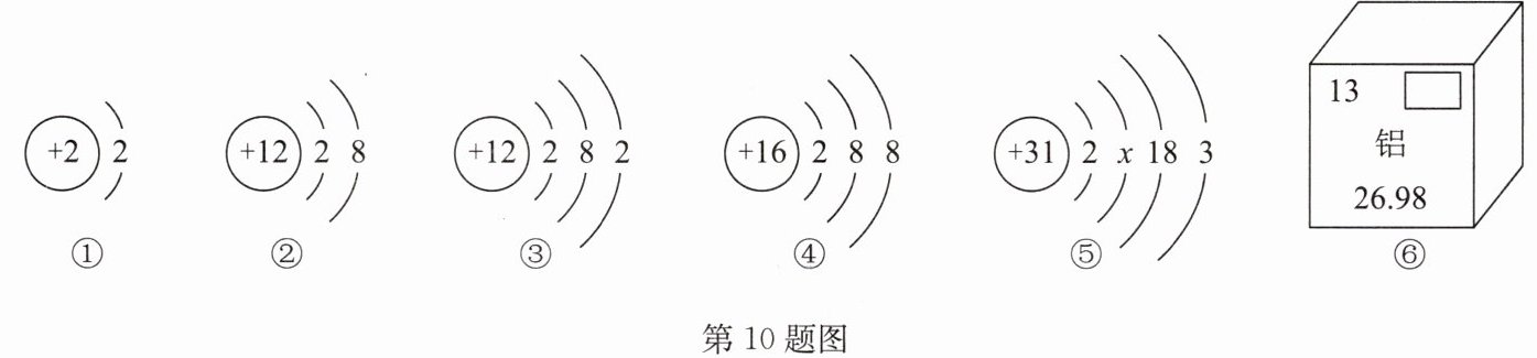 D.⑤中 x = 8,⑥中“□”内是 Al,铝的相对原子质量为 26.98g