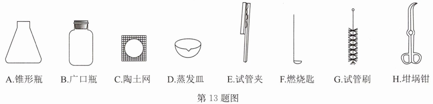 13. B 将下列仪器名称前的字母序号填在相应空格位置。