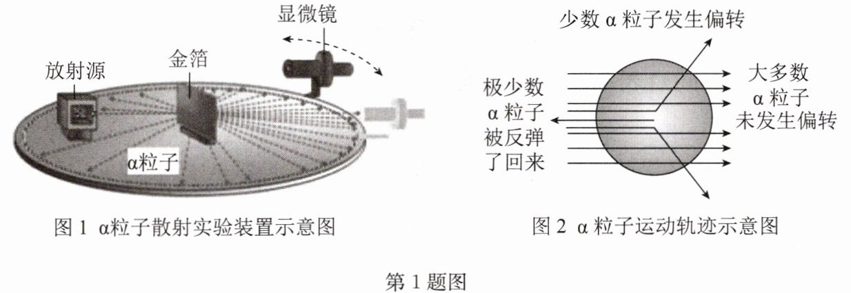 。(2)1911年著名物理学家卢瑟福为探索原子的内部结构进行了著名的α粒子散射实验(图1),实验现象如图2所示。由实验现象可以推理得出的结论有