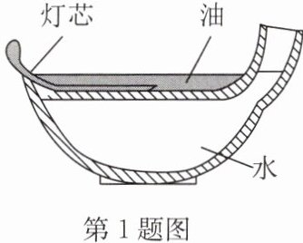 1. 如图是古代省油灯的示意图. 它下层盛水, 能减慢上层油的消耗. 点灯后, 水在升温的过程中 (