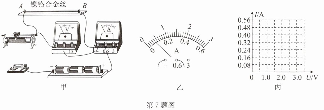 7. 如图甲所示,小明测量接线柱A、B间镍铬合金丝的电阻.
