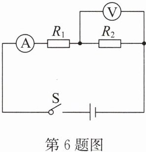 6. 在如图所示的电路中,$R_{1}= 10Ω$.当开关$S$闭合时,电流表的示数为$0.2A$,电压表的示数为$4V$.求: