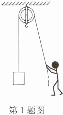 1. (2024·南通)如图,工人用 330N 的拉力,使用定滑轮将质量为 30kg 的物体 6s 内匀速吊起 3m,g 取 10N/kg. 求:
