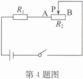 4. 如图所示,将一个$R_{1}= 10Ω$的定值电阻和最大阻值是20Ω的滑动变阻器串联,接在电源电压是3V且保持不变的电路上.