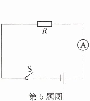 5. 如图所示,电源电压不变,电阻$R= 10Ω$,闭合开关S,电流表A的示数为0.3A,若要使电流表A的示数变为0.6A,则 (