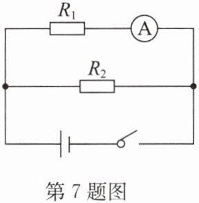 7. 在如图所示电路中,$R_{1}= 20Ω$,$R_{2}= 30Ω$,闭合开关后,电流表的示数为0.3A.则: