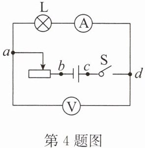 4. 在如图所示的电路中,闭合开关S,灯泡L不亮且电流表和电压表均无示数. 用电压表检测电路,当电压表分别接a、b两点和b、d两点时,电压表均无示数,接c、d两点时电压表有示数,则可判定 (