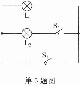 5. 如图所示的电路中,当闭合开关$S_1、$$S_2$后,只有灯$L_2$发光,根据你的学习经验,故障可能是(