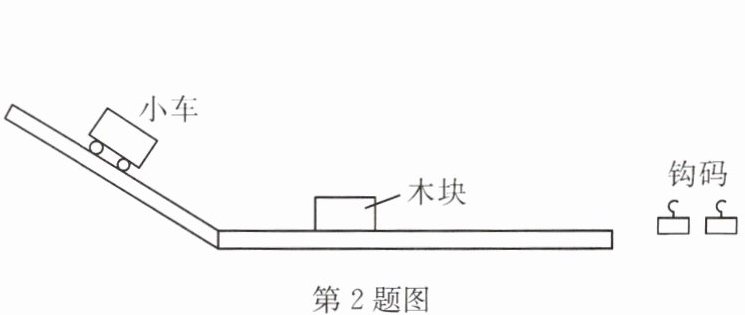 2. 用如图所示的器材探究动能的大小与哪些因素有关,实验时让小车从斜面上由静止开始下滑,撞击置于水平面上的木块。关于该实验,下列说法中错误的是(