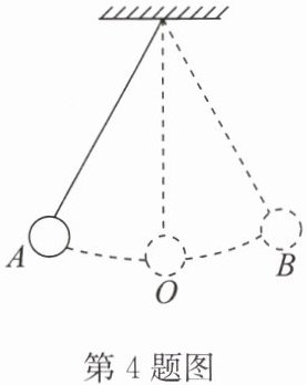 4. 如图所示,摆球由 A 点静止释放,经过最低点 O 到达 B 点,A、B 两点等高。下列说法中正确的是 (