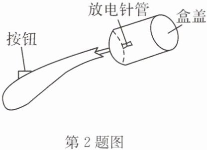 2. 在透明塑料盒的底部钻一个孔,把电子式火花发生器的放电针管紧紧塞进孔中,打开塑料盒盖,向盒中滴人数滴酒精,再将盒盖盖紧,然后按下电火花发生器的按钮,盒盖被弹飞。下列说法中正确的是(