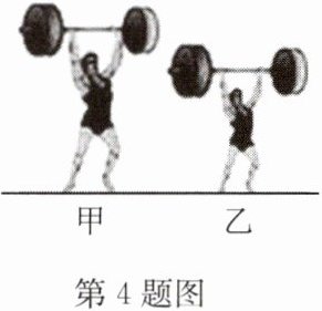 4. (2024·建湖县月考)如图是两名运动员以相同速度从地面举起相同质量杠铃的情景,下列判断正确的是 (