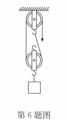 6. 如图所示,工人用该滑轮组在20s内将质量为150kg的重物匀速提升了10m,其工作期间的机械效率为75%,钢丝绳能承受的最大拉力为6000N,不计绳重与摩擦,g取10N/kg,则下列说法正确的是(