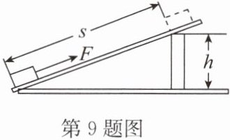 9.如图所示,斜面长$s= 1.2m$、高$h= 0.3m$,现用5N的拉力F将重为16N的物体沿斜面向上从底端匀速拉到顶端,求: