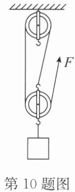 10.(2024·东台一模)工人用如图所示装置在10s内将质量为45kg的货物匀速提升2m,此过程中拉力做功的功率为120W.不计绳重和轮与轴的摩擦.($g$取10N/kg)求: