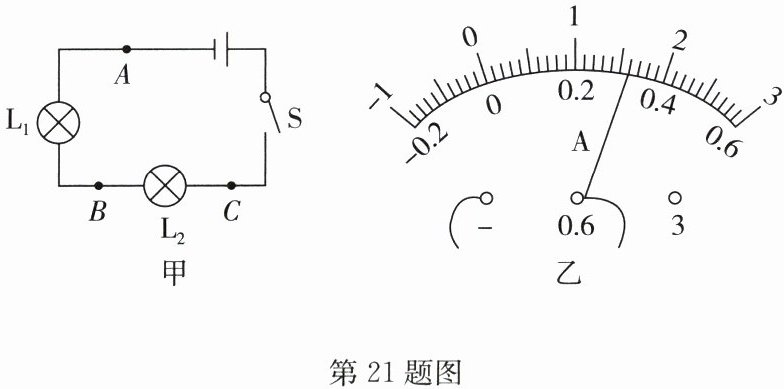 21. (12分)如图甲所示,在“探究串联电路电流规律”的实验中: