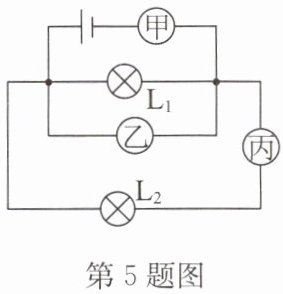 5. 如图所示的电路中,甲是______,乙是______,丙是______(以上三空均填“电压表”或“电流表”),并标出所填甲、乙、丙三电表的正、负接线柱。