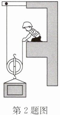 2. 如图所示,工人用250N的力F将重为400N的物体在10s内匀速提升2m,此过程中拉力F的功率是