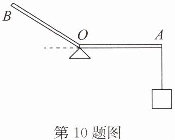 10. 如图所示,$AOB$为一杠杆,$O$为支点,杠杆自重不计,$AO= OB$,在杠杆右端$A处用细绳悬挂重为G$的物体,当$AO$段处于水平位置时,为保持杠杆平衡,需在$B端施加最小的力为F_{1}$;当$OB$段在水平位置时保持杠杆平衡,在$B端施加最小的力为F_{2}$,则 (