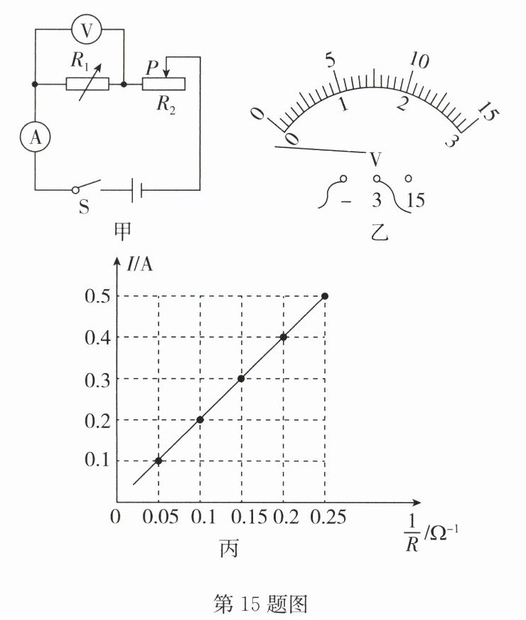 (填“需要”或“不需要”)调节$R_{1}$的阻值.(4)在探究电流与电阻的关系时,根据实验数据绘出了$I-\frac {1}{R}$图像,如图丙所示,分析图像可得出结论:______