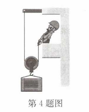 4. 如图所示,用动滑轮将重为150N的物体匀速提升2m,用时10s,拉力大小为100N,动滑轮重20N,此过程中有用功为