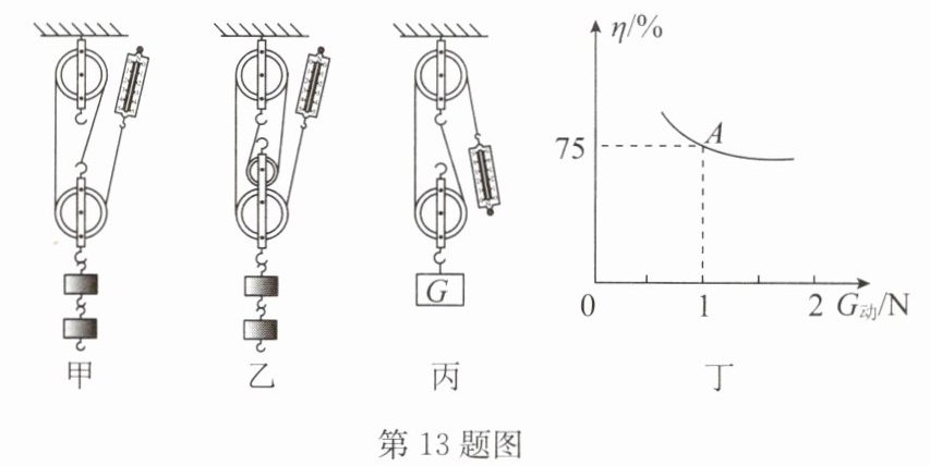 (3)采用图丙装置,改变动滑轮重,提升同一物体进行多次实验,获得数据并绘制出如图丁所示的图像,分析可知:被提升物体所受的重力相同时,动滑轮越重,滑轮组的机械效率