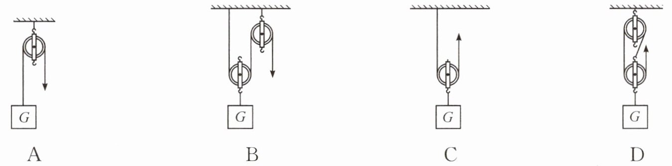 1. 使用滑轮(组)提升同一个物体, 不计滑轮重和摩擦, 下列四种情况中最省力的是 (