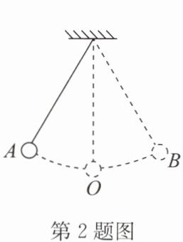 2. (2024·东台期中)如图所示,将摆球从A点静止释放,经过最低点O到达B点,A、B两点等高,摆球到达B点时动能为