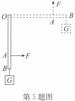 5. 如图所示,O是杠杆的支点,为了提升重物,用一个跟杠杆始终保持垂直的力F将杠杆由图示位置缓慢转动到水平位置,在这个过程中(