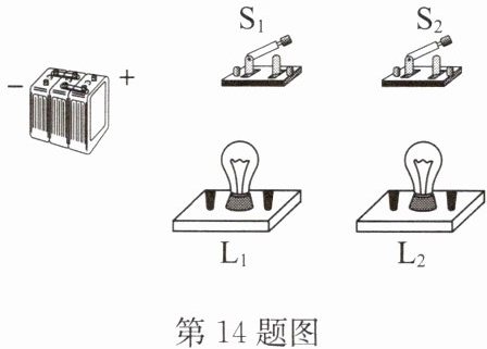 13. 小明利用灯泡$L_{1}$、$L_{2}$,三个开关S、$S_{1}$、$S_{2}$,一个电池组及导线若干组装电路,按要求设计的电路图如图甲所示.