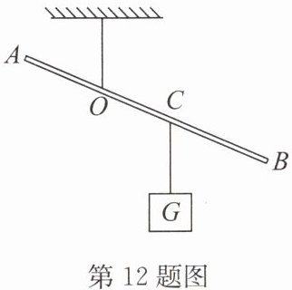 12. 如图所示,O为支点,杠杆AB平衡时,画出施加在杠杆上最小动力$F_1$的示意图.