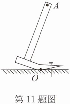 11. 图中利用羊角锤撬钉子,在锤柄A点处画出所施加的最小动力F和其力臂l.