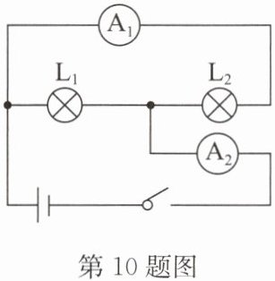 10. 如图所示的电路中,灯$L_1、$$L_2$是
