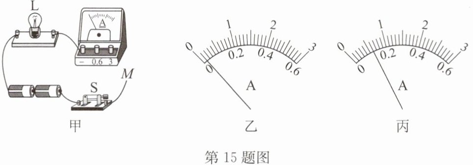 15. 在练习电流表的使用时,如图所示是小华用电流表测通过灯泡L电流时的电路.