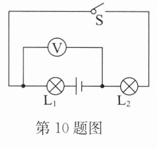 10. 如图所示,电源电压是6V且保持不变,开关S闭合后,电压表测灯