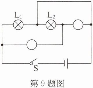 9. 如图所示,在两个“○”内选填“电压表”和“电流表”的符号,使两灯正常工作.